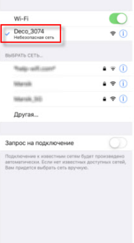4. Найдите в списке Wi-Fi сетей сеть с названием "Deco_***" без пароля и подключитесь к ней, после чего в приложении нажмите кнопку "Приступим".