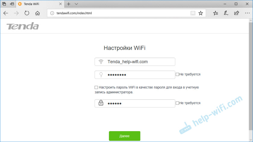 5. На следующем шаге придумайте новое или оставьте заводским имя Wi-Fi сети, а также придумайте пароль для защиты подключения. Также отдельно нужно указать пароль для доступа к настройкам роутера. Пароли рекомендуем куда-нибудь записать, чтобы не потерять.